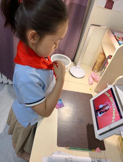 因为疫情原因,原本应该戴上红领巾的同学们,入队时间推迟到了下学期。但是,同学们心中对加入少先队的憧憬,对中国共产党的热爱,没有一丝丝改变。同学们在家中坚持学习少先队队课,练习佩戴红领巾,用自己的行动,表达了对祖国,对中国共产党深深的爱。