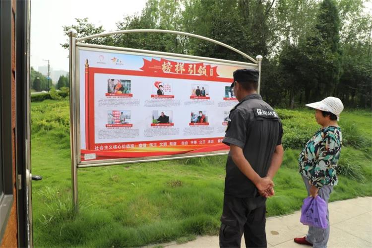 “社会主义核心价值观”“榜样引领”公益广告展板一经制作安装完成,就成为各个公共场所的靓点,引得群众驻足观看。每天与家人到龙盘山公园遛弯的刘女士看到新安装的“榜样引领”展板,感叹地说:“咱都得向这些榜样学习才是,做一个对社会有用的人。”“富强、民主、文明、和谐,自由、平等、公平、法治,爱国、敬业、诚信、友善。”在桃花山公园公益广告展板前领着孩子游玩的一位市民,指着社会主义核心价值观内容教给孩子念着,他说:“这些公益广告太好了,可以让孩子从小就耳濡目染,市民们也都能看到,学到。”